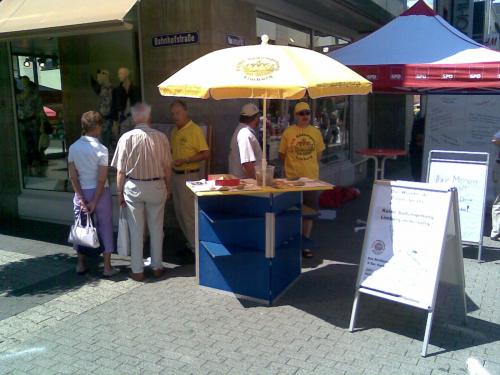Die Informationsstände finden Sie immer Samstags von 09:00 bis 13:00 in der Bahnhofstrasse vor dem Geschäft von "Vohl & Meyer".
