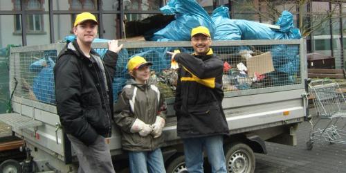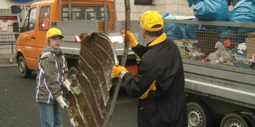Mit einem Anhänger brachten die Vereinsmitglieder den Müll in zwei Fahrten in die Stadt auf den Europaplatz. Dort nahmen Mitarbeitern des städtischen Betriebshofs den Müll in Empfang. Die Hälfe der bis 13:00 Uhr abgegebenen Müllmenge stammt aus der Aktion des Vereins in Blumenrod.